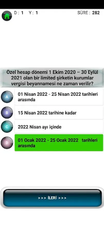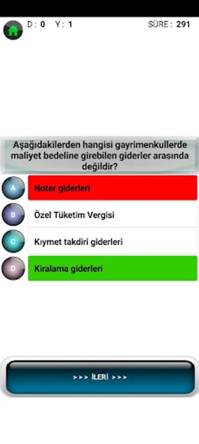 The interface of the application is designed to be simple for everyone to use. Remember that it's the information inside that counts, and each question is popular once the essays are built. As a result of the answers you give, if they are correct, you will see the green color. If they are incorrect, the correct one is displayed immediately. It was also designed to give one minute to each question. If a 5-question test cannot be completed in 300 seconds, the trial exam ends.
