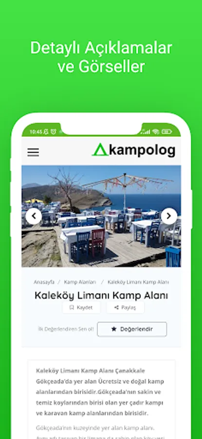 Kampolog: We started Kampolog in 2021 in order to ensure that the Camping Areas application, Camping Places where you can be in touch with nature, nature activity areas, camping areas, glampings and caravan camping areas, Free Camping Areas caravan parks, accessible to everyone.