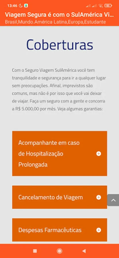 Travel insurance with SulAmérica Travel Insurance. List and hire in less than 5 minutes.