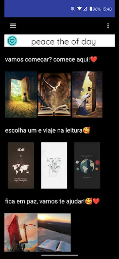 Welcome! We are peace the day here you can reconnect with God and receive his love in you we are an app with a single goal, take the word of God beyond borders we want to help you weekly and daily to follow these paths we will show you one new verse a day and let's help you learn let's help you on that walk!