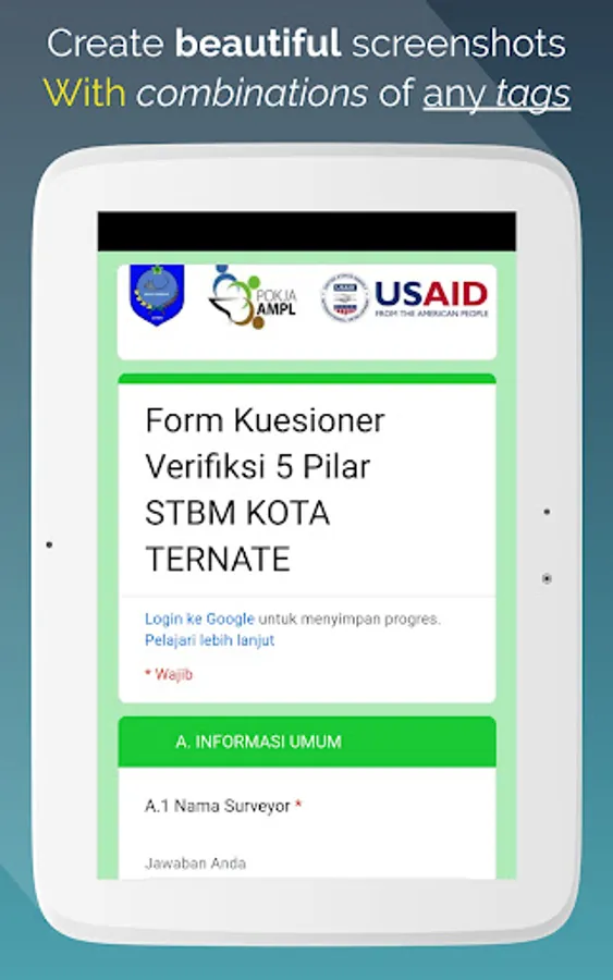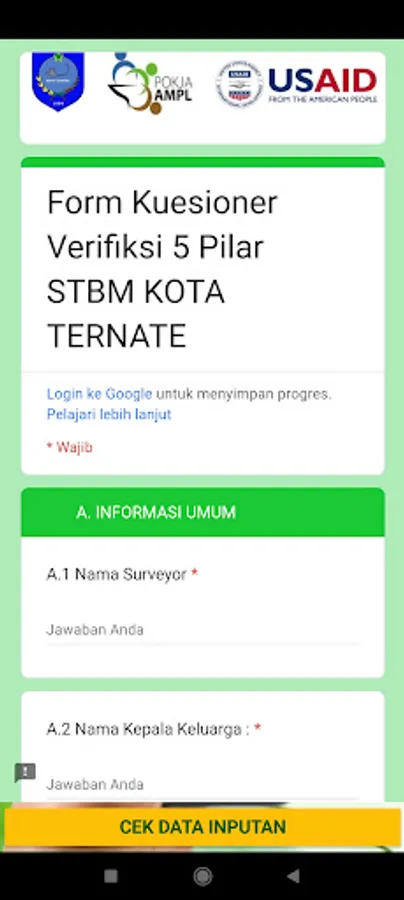 The Ternate City STBM Data Collection Application is an application to collect data on the 5 pillars of sanitation in the community.