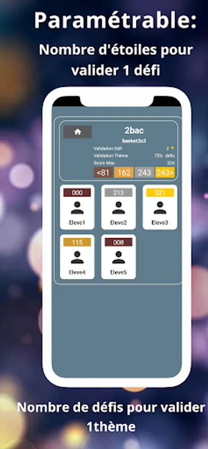 To validate the challenge, the teacher stipulates the number of stars to be won (1,2, or 3)