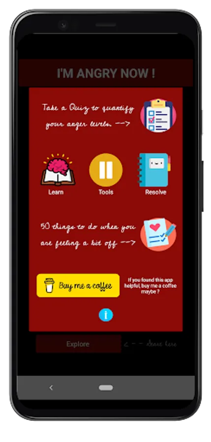 Angrr is a comprehensive anger management app designed to help you deal with anger and the stress associated with it. Angrr can help you control and effectively resolve any problems that arise from issues related to anger. The app was conceptualized and created by a psychiatrist and is meant to be a complete solution to help you control anger. The app is organised into several sections which can help you understand and deal with anger issues.