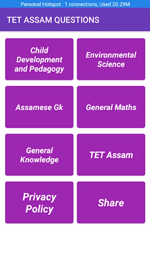 This “TET- Assam questions Paper”app is our unique and 1st presentation of TET Assam candidates. All TET exam's questions & answers are prepared by our expert team . You can use these answer for your exam preparation only.