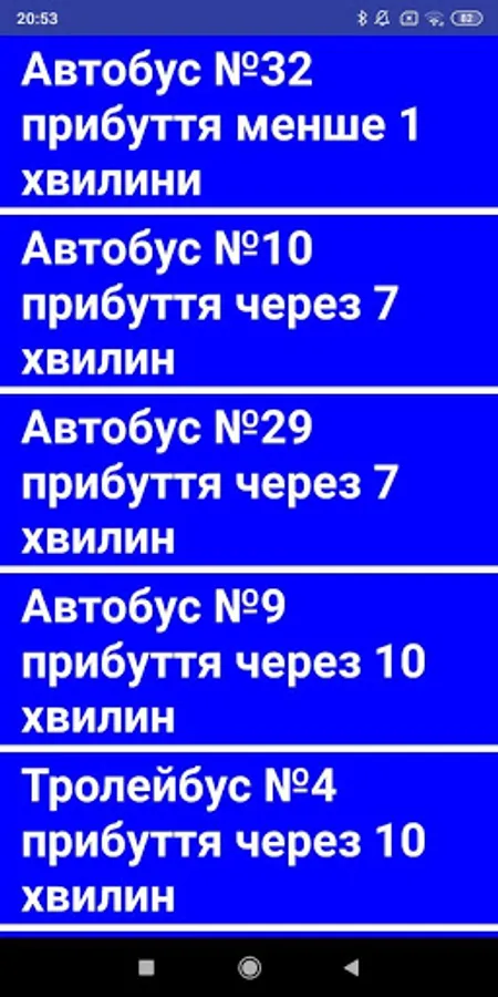 - at the selected stop to find out the forecast of transport arrival. If the vehicle is going to a stop with a low floor - this will be reflected in the forecast. The forecast is sorted by the arrival of transport - ie the same route can be several times in the forecast list;