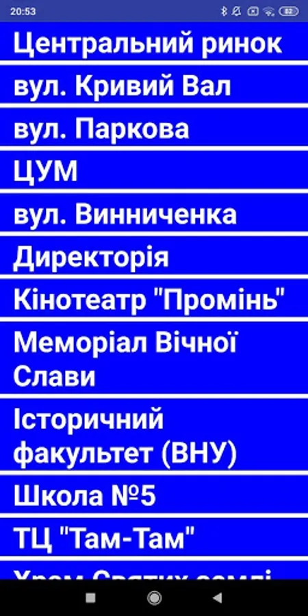 - select the desired transport and set a target stop on the route. The application will notify you of the approach and arrival to the destination stop.