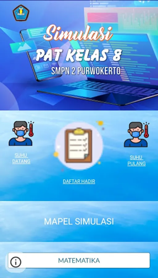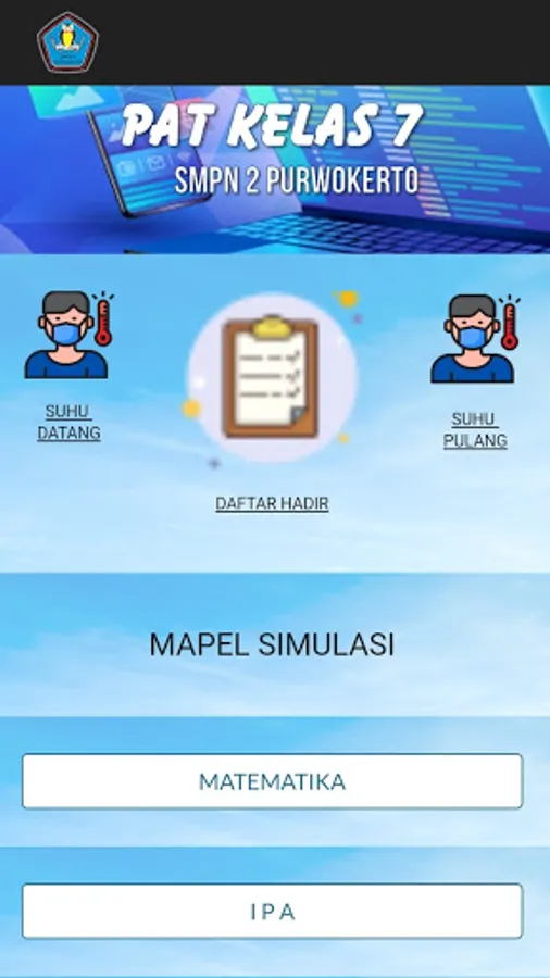 Online PAT application is an application to open the Year End Assessment page held at SMP Negeri 2 Purwokerto. This application requires a login. Please contact the homeroom teacher for username and password. Every arrival and return at SMP Negeri 2 Purwokerto all students are required to fill in the temperature check form provided. If the app shows a warning about Ananda's temperature, please contact the Room Supervisor for follow-up. Each time you will work on a question, please fill out and sign the Attendance List beforehand. All questions can only be done once and you are required to use a Belajar.id account