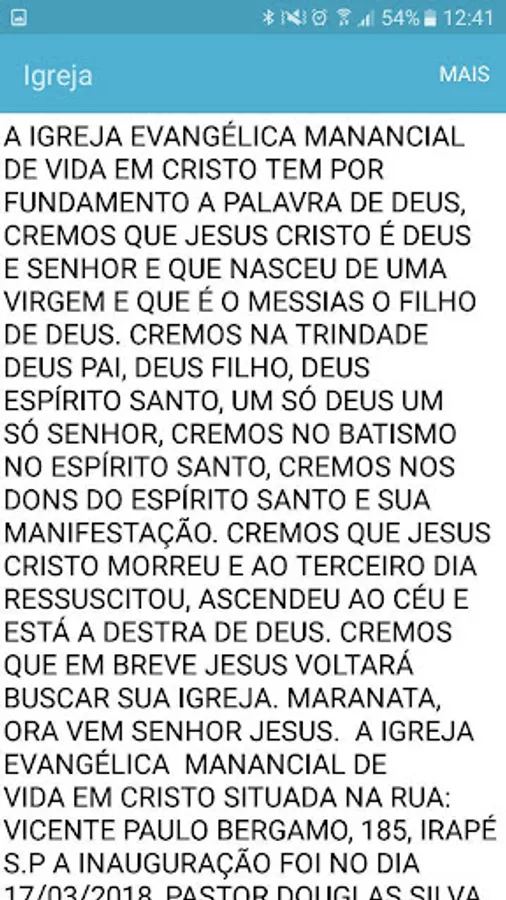 Application of the Church of Manantial life of Christ in the city of Irapé in the state of São Paulo.