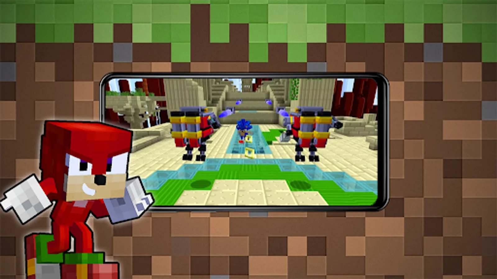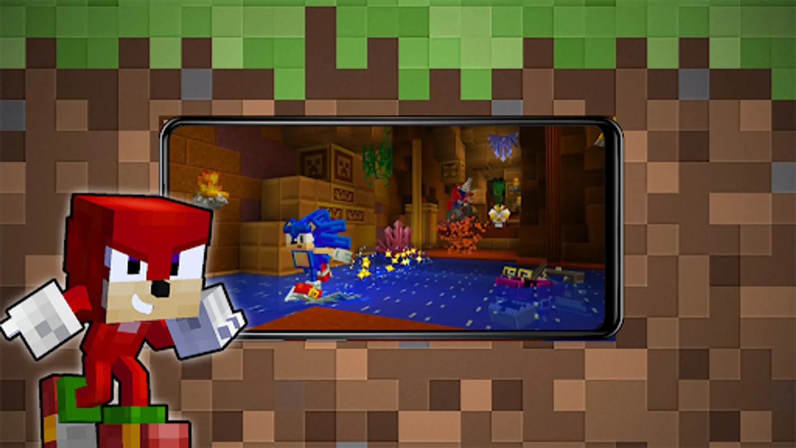 Mod Sonic the Hedgehog races into Minecraft at supersonic speeds! Sprint, roll, and spring off enemies through iconic zones, with infinite gameplay. Master the thrilling abilities of Sonic, Tails, Knuckles, and more! Compete with friends for high scores. Unlock achievements, characters, new zones, and a challenging Eggman Mode! Includes 24 popular skins.