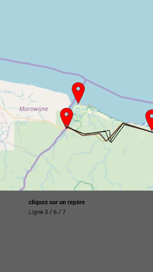 Get the TIG line numbers passing through Saint-Laurent du Maroni, Iracoubo,