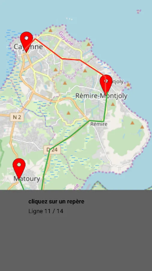 Select a marker that corresponds to a municipality and obtain the different TIG line numbers that are served.