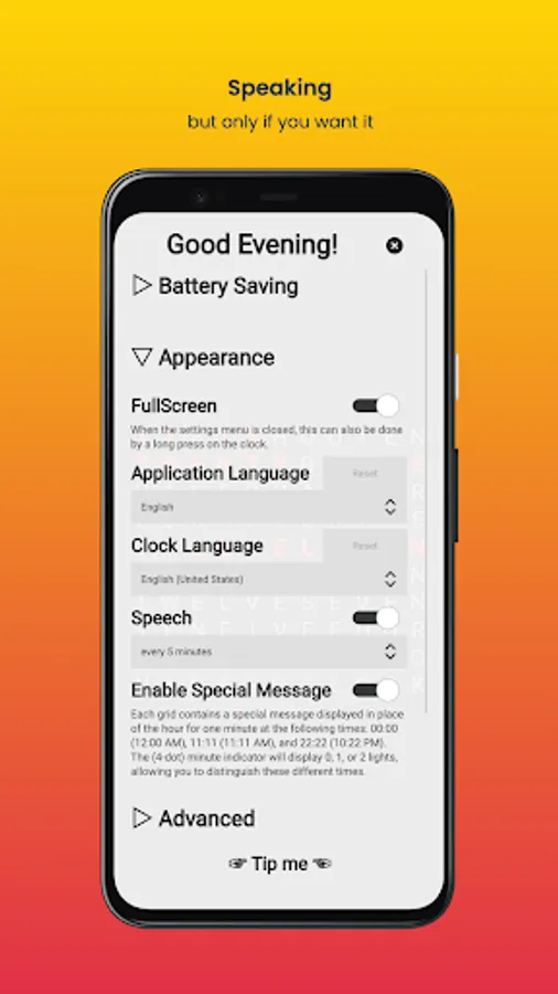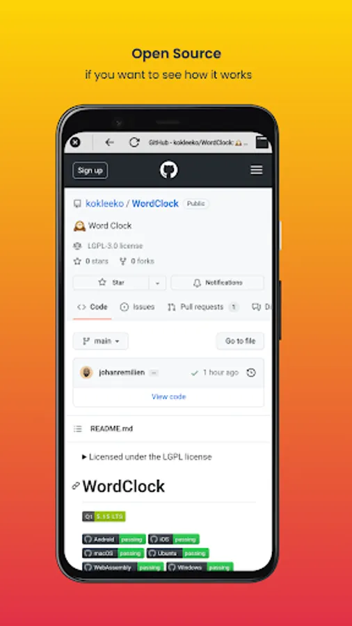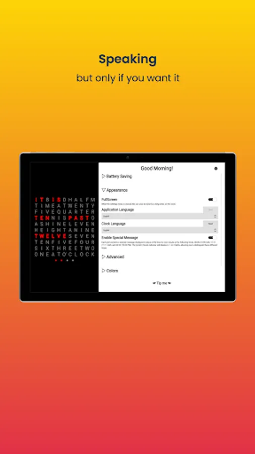 It is a simple desktop clock that displays the time in a neo-retro way in different languages (French, Spanish, British English, and American English).
