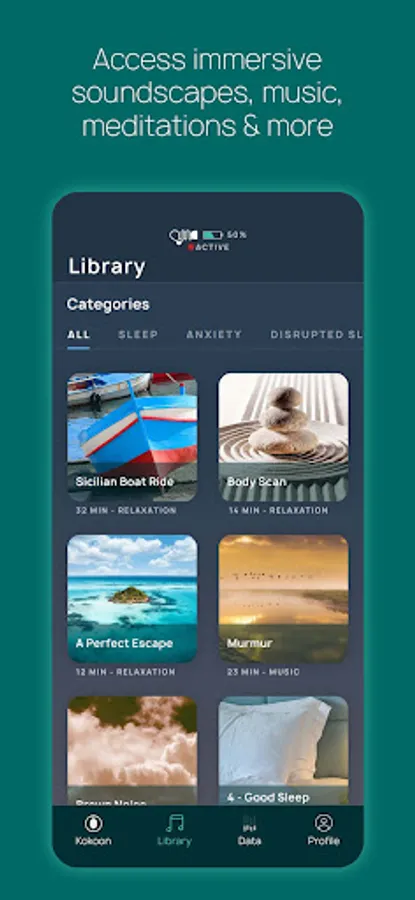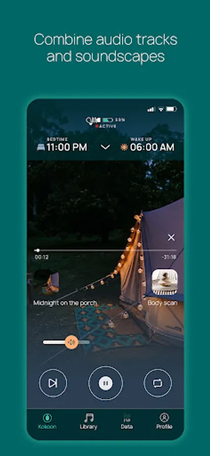 Original content library - includes different types of audio tracks for sleep: coloured noise, soundscapes and music as well as a variety of spoken word audio to deepen your understanding of your sleep or practise different relaxation techniques.
