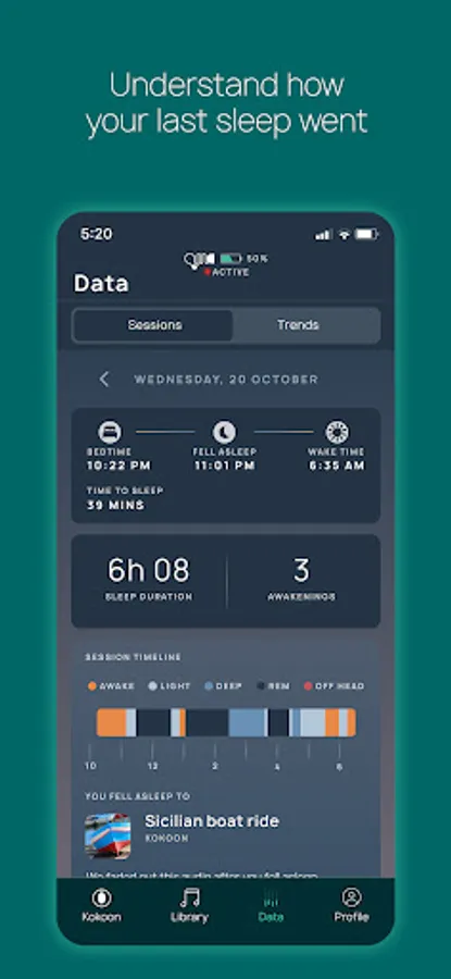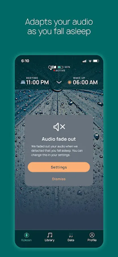 Data tracking and insights - build an understanding of your sleep, and see how your audio usage and behaviours affect your sleep over time.
