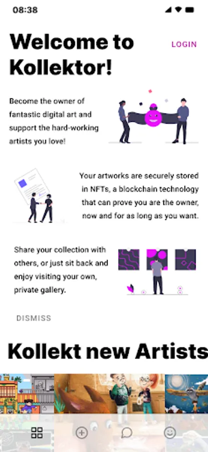 Kollektor provides you with a gallery and a wallet for your digital art kollektion. Support your favorite artists, and instantly receive tokens of ownership as you show them your appreciation.