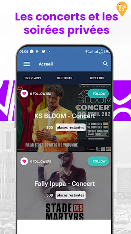 - Book tickets for you and your friends to events you would like to attend anywhere.
