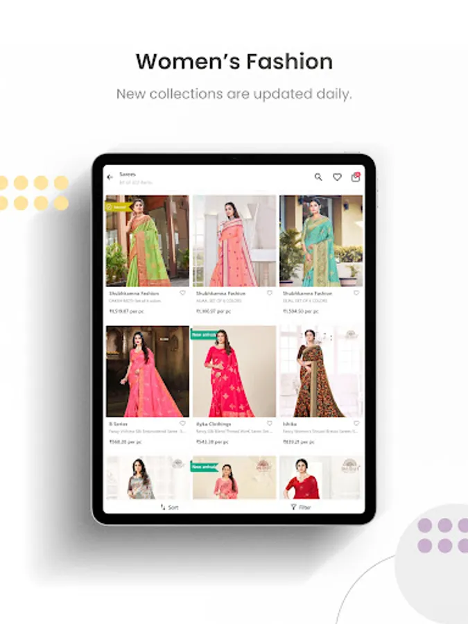 Be an entrepreneur or retailer who provides the latest trends in women’s fashion. Choose family favourites from the numerous choices of Kurtis, Sarees, Dupattas & Shawls, Suits & Dress Material, Lehengas, Bottom Wear, Hijabs, Ethnic Jackets and more. Bring your customers styles they’ll love every time.