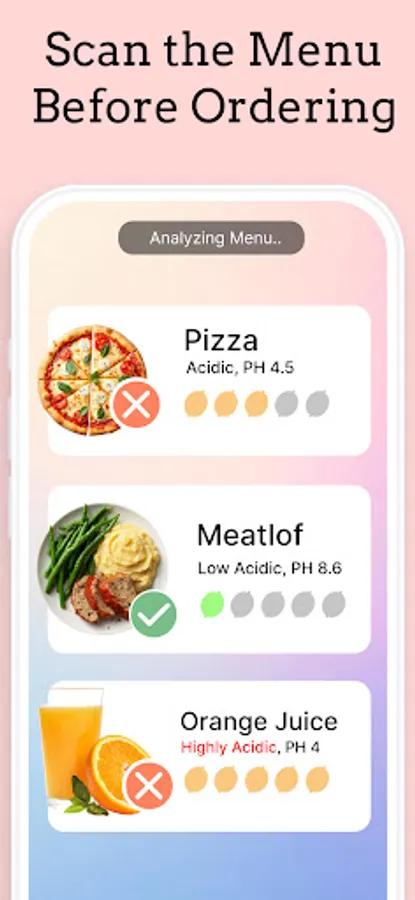 Simply snap a photo of your meal or select a dish from a menu, and let our AI-powered system instantly determine if it aligns with your low-acid diet. No more guessing or endless research!