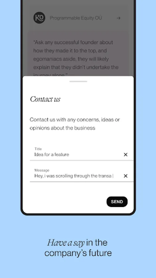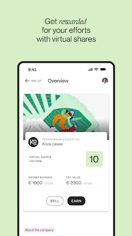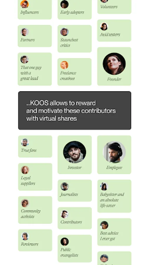 Try KOOS app to have an overview of your virtual shares, see their value grow and exercise your right to have a say in the companies’ businesses. Also see the possibilities to earn more virtual shares from the community-driven companies willing to share the success with their contributors.