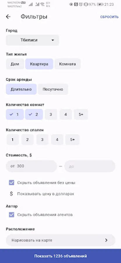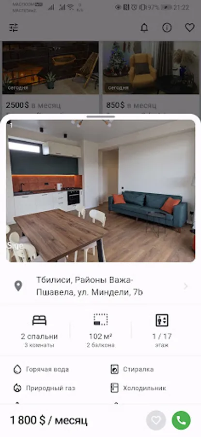 Bude is a popular and convenient service for renting, buying and evaluating real estate in Georgia. The application makes it easy to find apartments in new buildings or in secondary housing, cottages and much more. All ads have already been checked by our team of moderators.