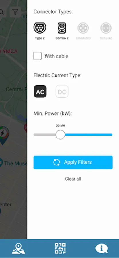 The KWEV App uses location-based services to show EV drivers available charging stations near them available for use. Drivers can filter and locate electric vehicle charging stations based on station type, availability, station ID, power level, and accessibility.