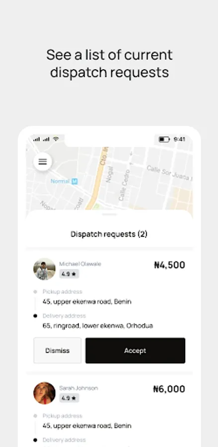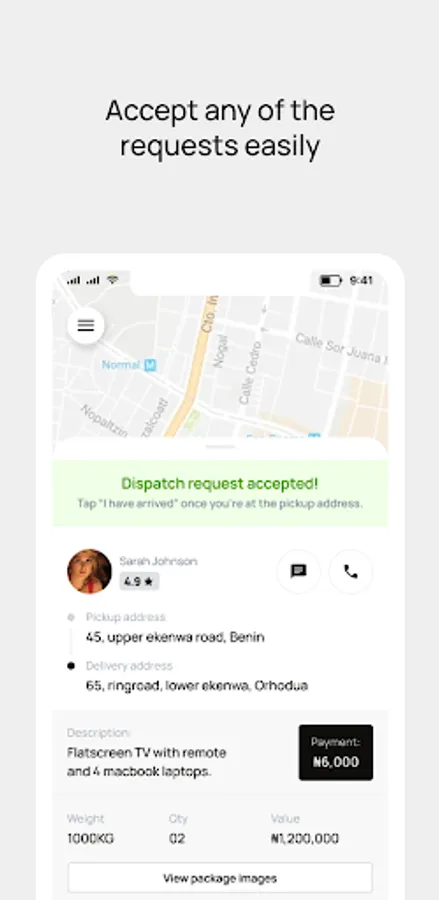 Riders are required to download the Kwik Pik rider app so that they can seamlessly receive, accept, execute and deliver dispatch requests from Kwik Pik users. The app let's riders to collect payment for deliveries, and easily withdraw it into their bank accounts on a weekly basis.