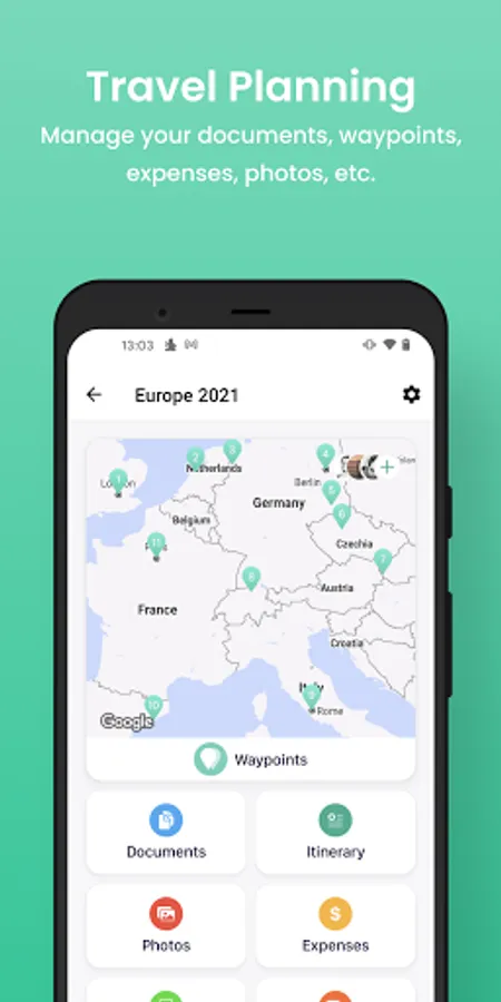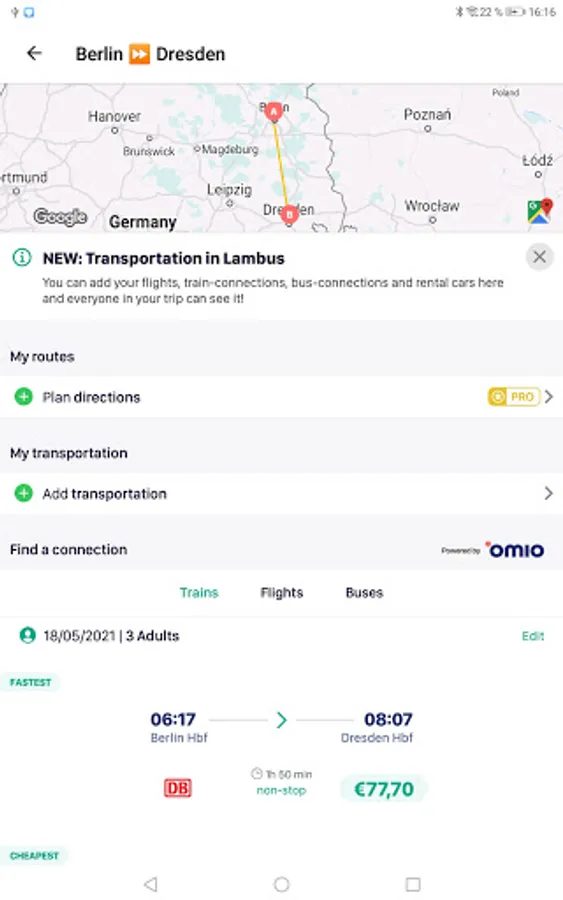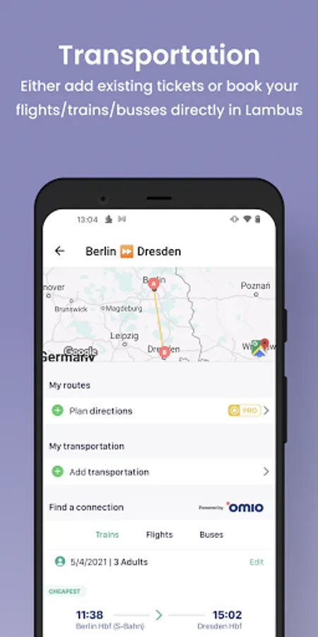 With our transportation feature, you can not only plan routes between stops, but also easily deposit or book your transportation. Once you book your tickets, they are automatically added to your travel documents!