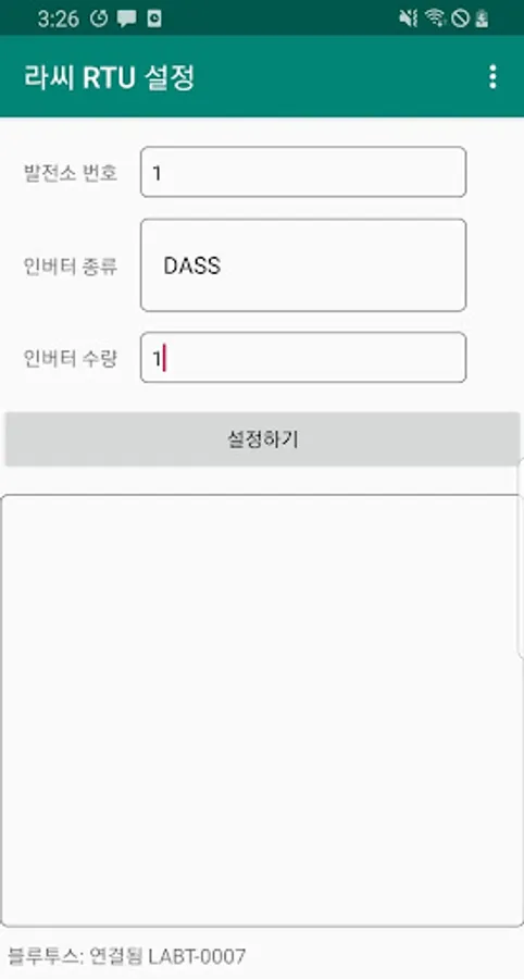 1. Set up equipment by entering information such as power plant number, inverter type, and inverter quantity.