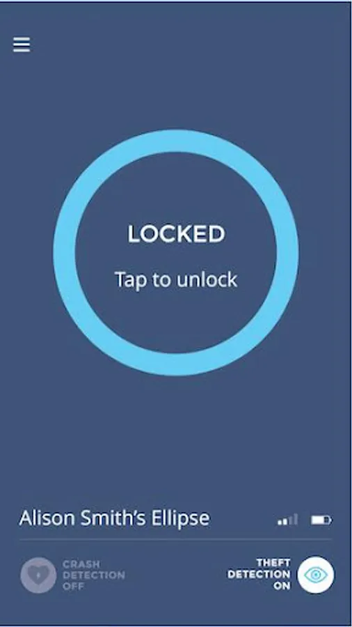 Lock and unlock with phone or proximity: open the app and tap the locking circle, or enable proximity lock/unlock so you can just snap the shackle into the lock bar and walk away.