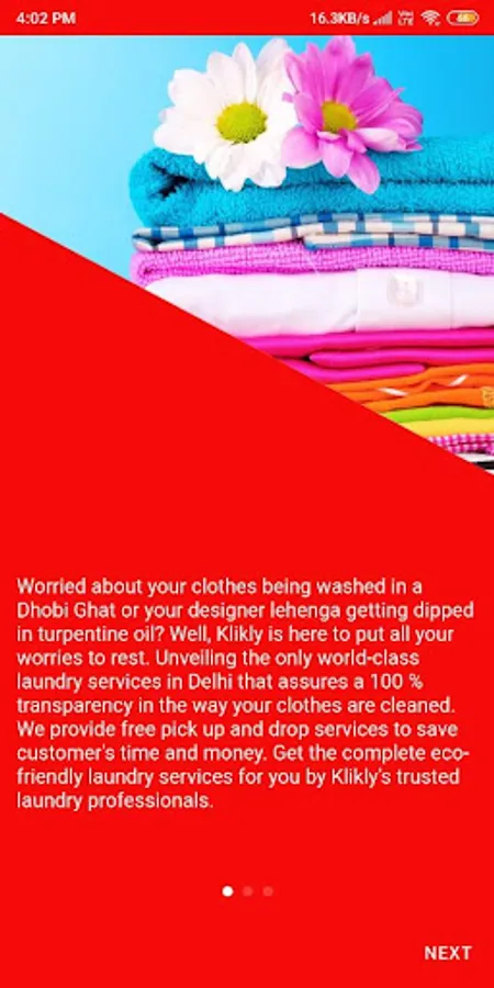 It is a simple and easy to use mobile app service to getting your cloths for wash and dry clean at your doorstep with a click.