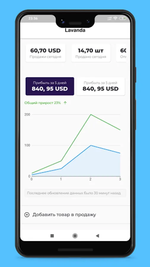 Analyze sales, work with orders, add products and manage balances on the go from your mobile device!