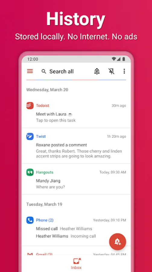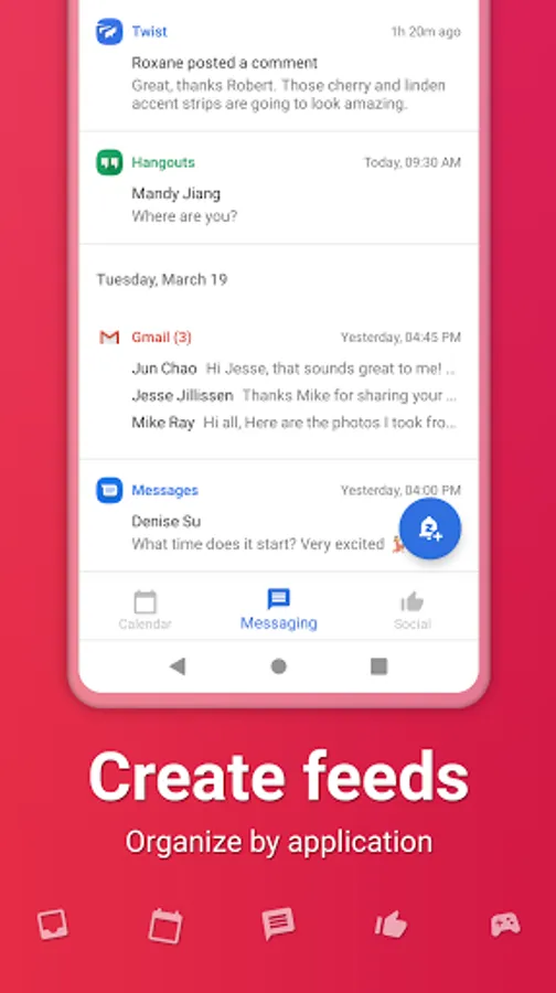 • create personalized feeds — filter your notifications by application, sorted by date and time