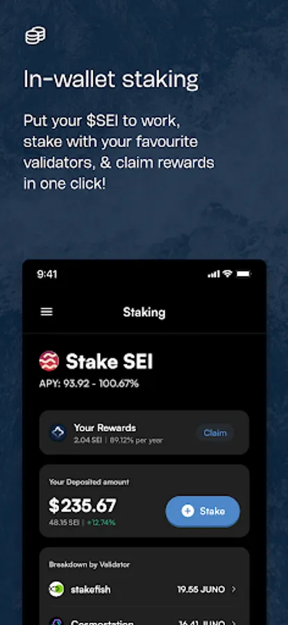 - In-wallet staking lets you put your assets to work with the most trustworthy validators