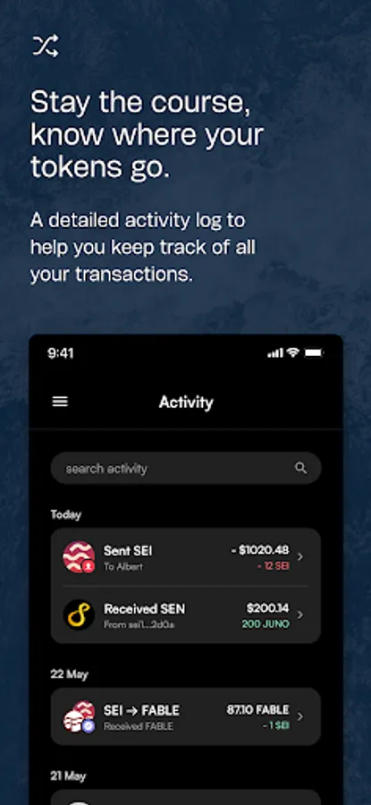 - Send & receive assets across the Sei network, with support for all assets on the mainnet & testnet