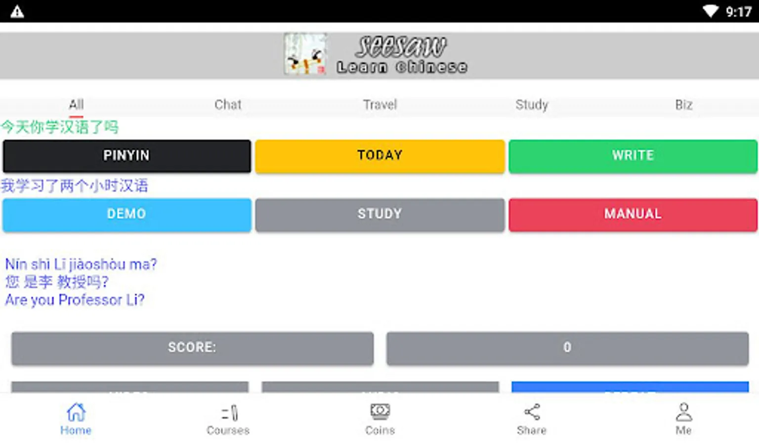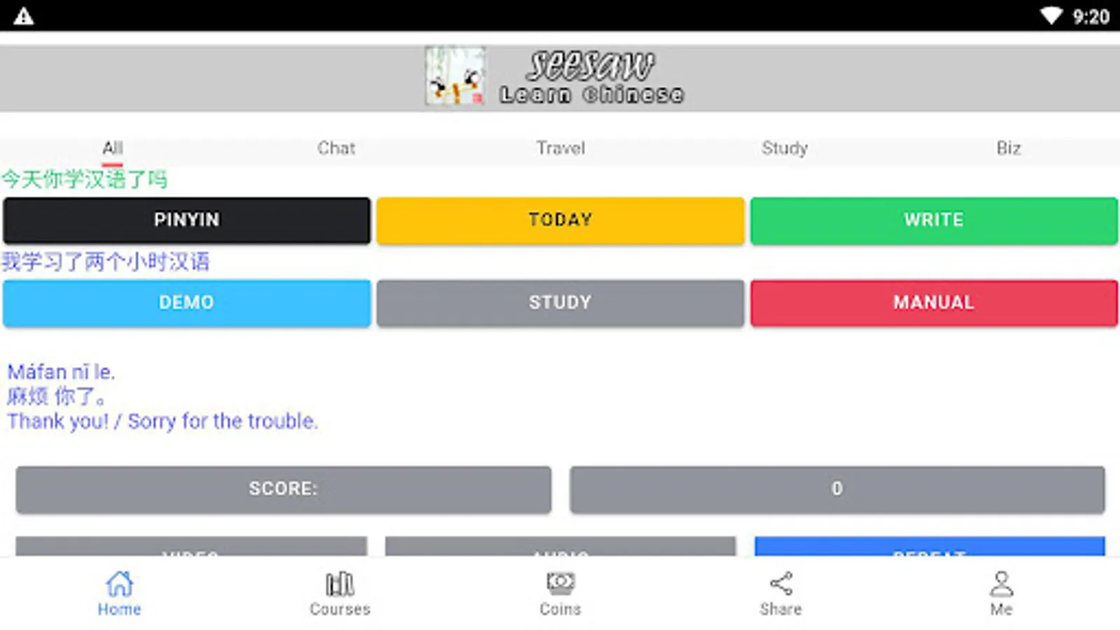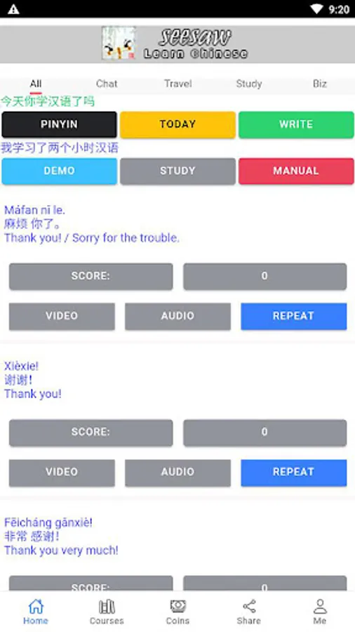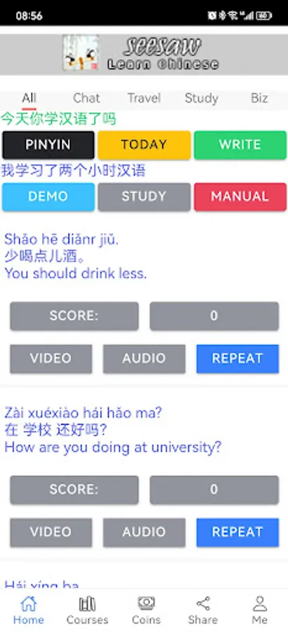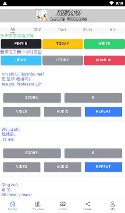 This APP helps you learn Chinese, including everyday expressions in various situations, with real-life demonstration clips, and can immediately test your learning, very cool