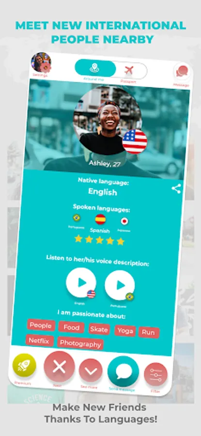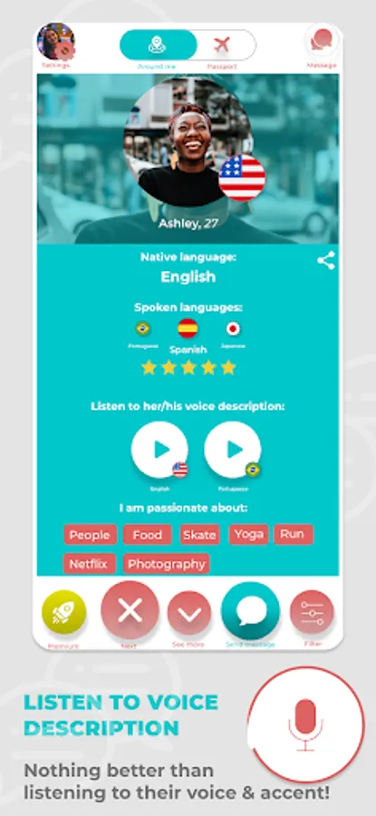 Step 1: Create your profile (name, picture, add your native, learning & wanting languages and make a vocal description in English or your native language).