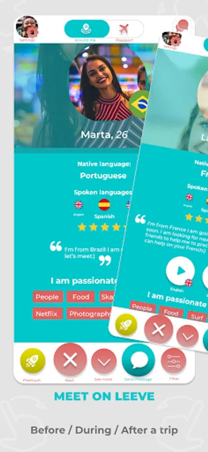 > If you are a travel lover than Leeve will allow you to carry on your trip even at home by meeting international people nearby!