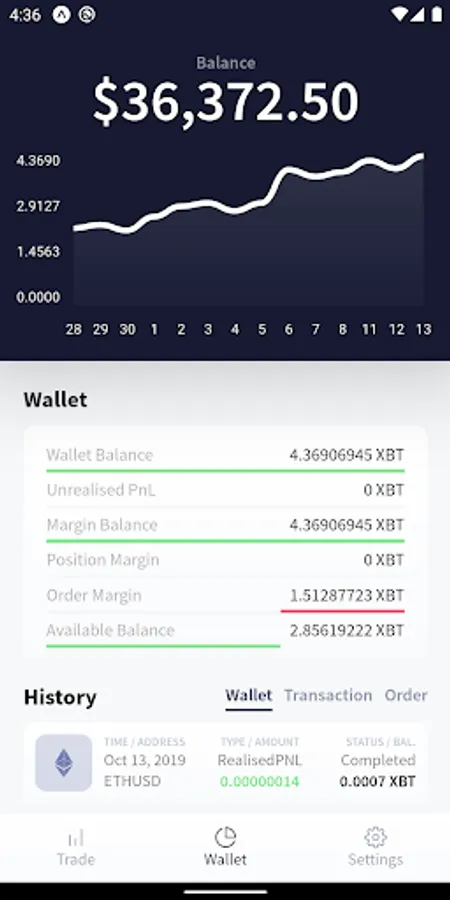 Check your wallet balance in a glance while having access to your accounts wallet, order and trade history.