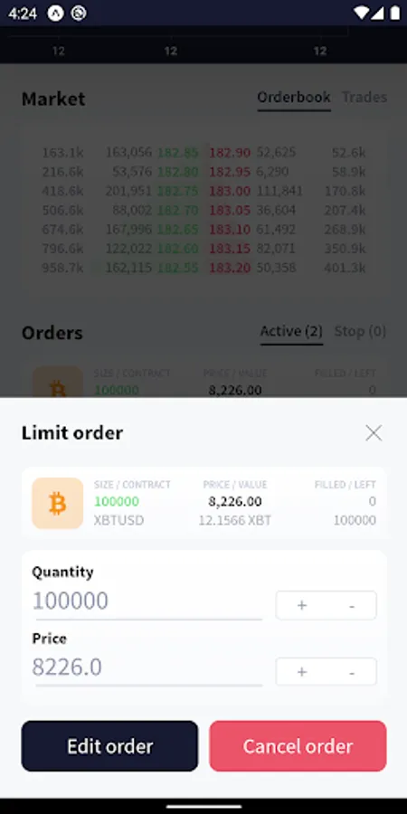 Manage your orders: edit the amount / price of your open orders, or cancel them.