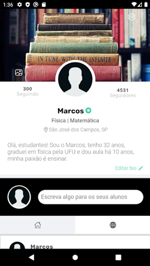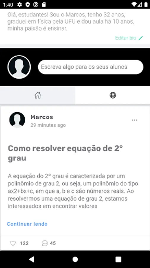 Liceu is a social network that aims to connect teachers and students. You will have contact with other people like yourself, and you will be able to share various contents. On the network, teachers can distribute and share their materials with students or other educators. Liceu is a platform for everyone to help each other with their studies!