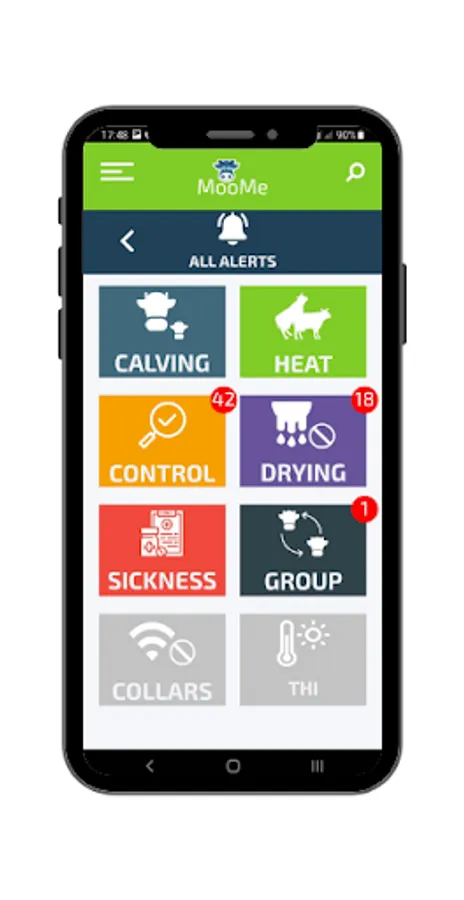 • Calving Alerts, 1st Heat After Calving, Gestation Controls, Drying