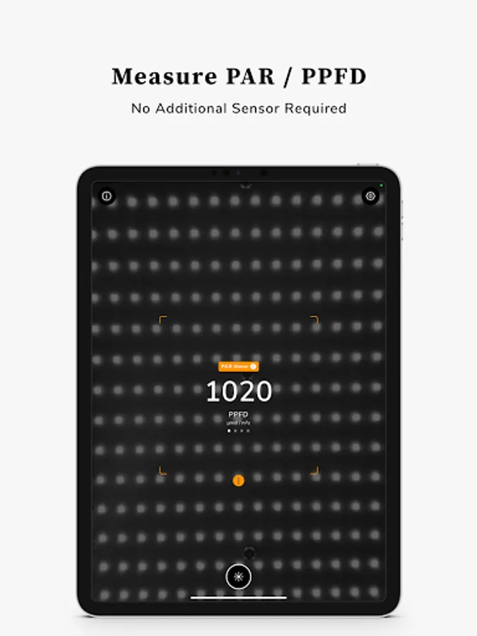 Our Photone grow light meter app measures photosynthetically active radiation (PAR) as PPFD in µmol/m²/s, calculates the daily light integral (DLI) in mol/m²/d, and measures illuminance in foot candles or Lux. It also allows you to measure light temperature in Kelvin which can help you determine if a light is suitable for fruiting and flowering or for vegetative growth.