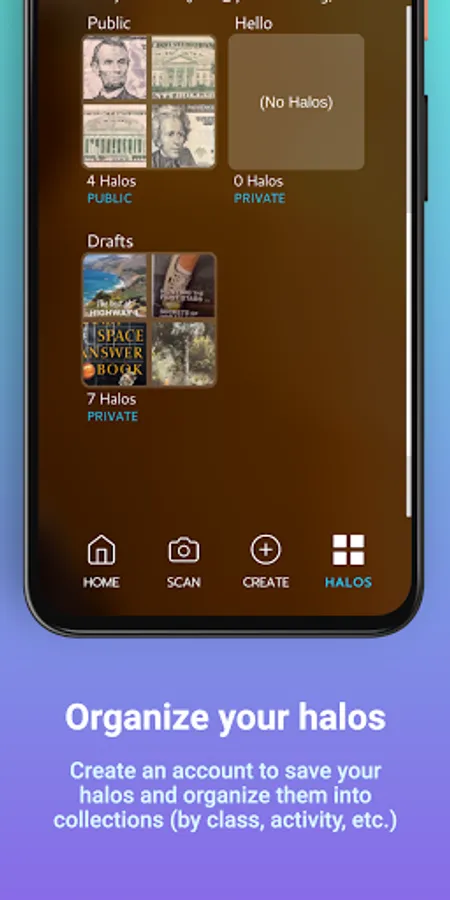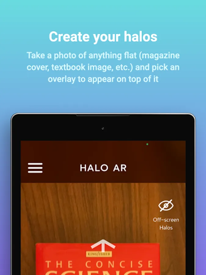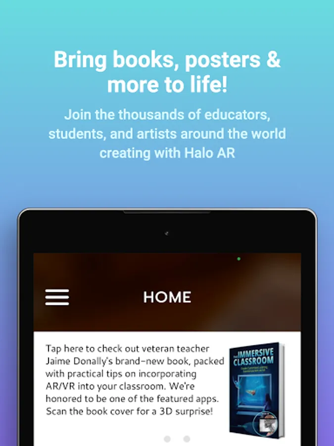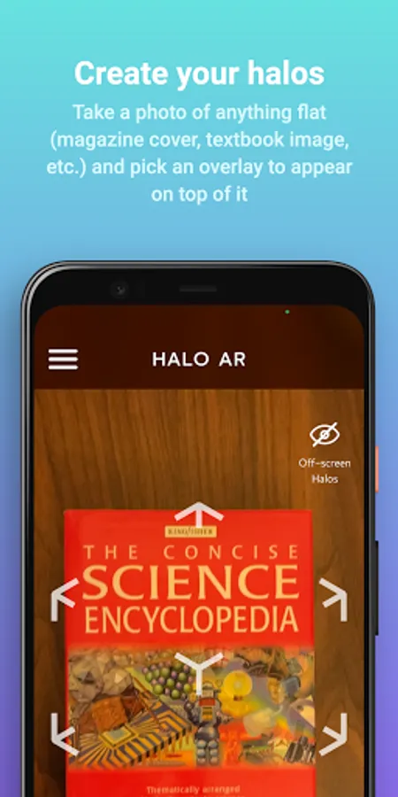 You’ve made your first halo! Now, scan the object (a book cover, textbook image, postcard, etc.), and watch the augmented reality (AR) overlay spring to life. No technical know-how required.