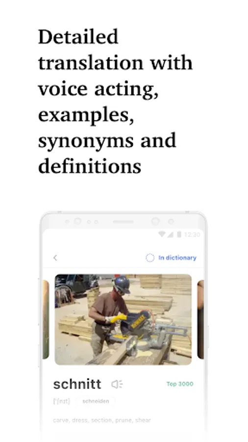 When translating words, Linga will show you a lot of additional information that will help you remember them better and use them correctly and in the right context: