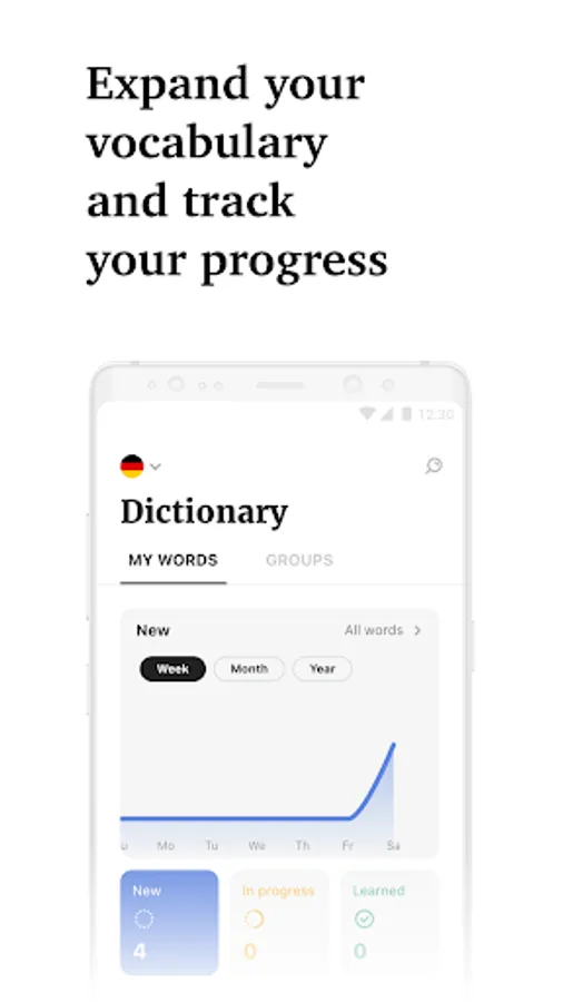 Add words from books, articles, or manually with suggested translation options, or specify your own. Form words into groups to better navigate the dictionary.