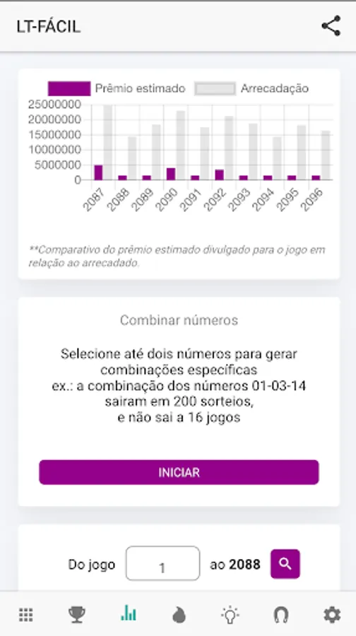 Based on the comments of our users, always indicating improvements, compliments and tips, we are moving towards being the best lottery app in Brazil!