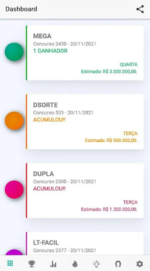 Based on the comments of our users, always indicating improvements, compliments and tips, we are moving towards being the best lottery app in Brazil!
