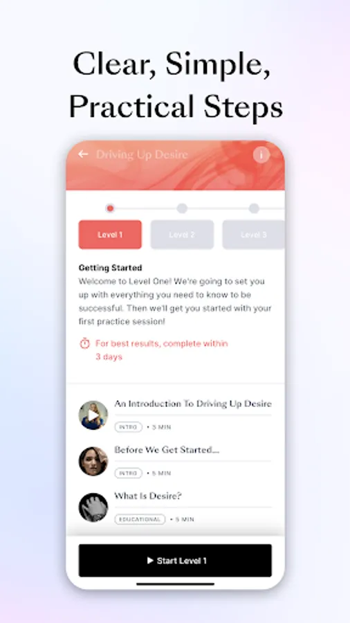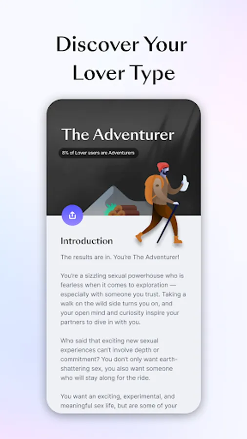 After setting your goal, Lover creates your 8-12 week training plan of personalized exercises, pleasure-based activities and educational videos.