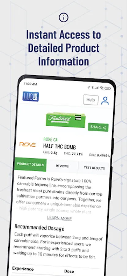 The LucidID App puts you in control of your cannabis experience. Easily access the information you need and ensure you have the very best experience, including the independent lab report, dosage recommendations, and your own personal stash cabinet for record keeping of your experiences with specific products. The most popular cannabis brands leverage the LucidID platform so that you can optimize your cannabis experience. Simply download, register and then scan, learn and earn rewards.