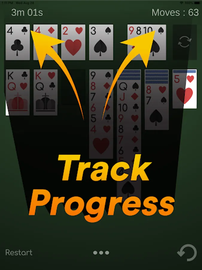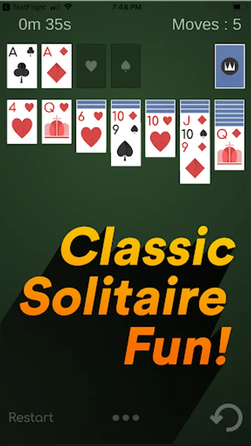 Move cards with a single tap or drag them to their destination. You can play the easy Draw 1 games where most games are winnable, and if you feel up-to the challenge, try your luck with Draw 3 play mode. Challenge yourself to beat your best scores and most of all.. Have fun with this popular game!!